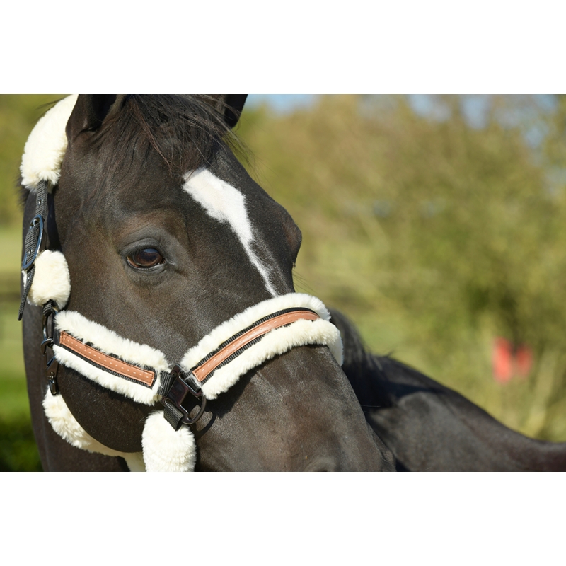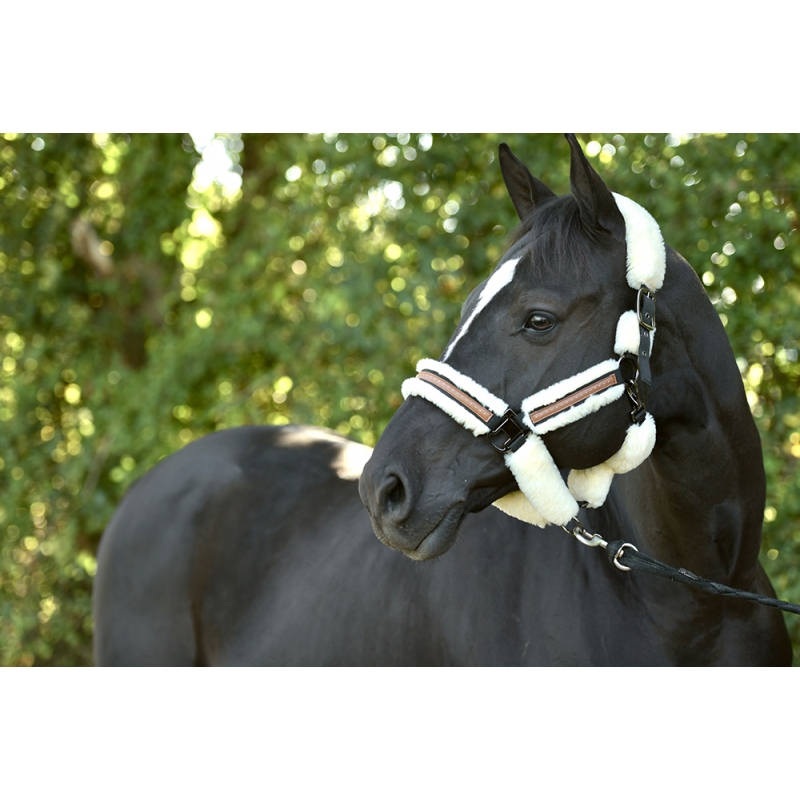 Un licol qui pense confort et esthétisme pour votre cheval. Le nylon sur les deux montants de chaque côté, la muserolle et la têtière sont surmontés d'une bande de simili-cuir sur un véritable faux-mouton. Il est très souple et agréable à manipuler et est disponible en taille cob ou cheval. Il est idéal pour faire voyager votre cheval à l'attache avec un maximum de confort ou pour des séances de pansage au top de la douceur ;)