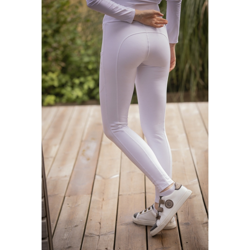 En haut de la jambe gauche, le logo Pénélope apparaît en strass et ajoute une touche girly à ce legging d'équitation.