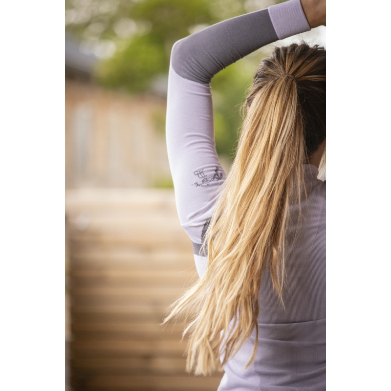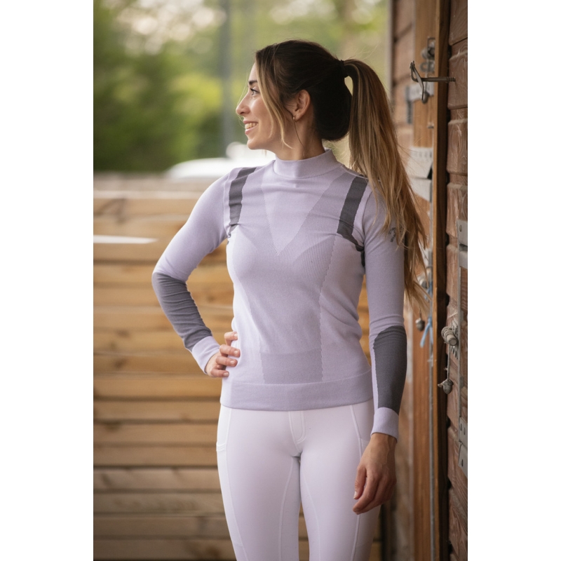Le T-shirt Warmup des Collections Pénélope est un t-shirt technique manches longues idéal pour la pratique de l'équitation ou d'autres sports. Près du corps, il est particulièrement confortable pour plusieurs raisons : d'abord, le tissu stretch technique dans lequel il est confectionné permet une bonne évacuation de la transpiration tout en gardant le corps au chaud, puis son col cheminée est particulièrement agréable à porter et enfin, son esprit sans couture, "Seamless" accentue l'effet seconde peau. Son look très "sport" composé de différentes tonalités de gris s'assortit facilement. Il se porte aisément à l'entraînement, aux écuries en sous-épaisseurs. En haut de la manche gauche, un logo Pénélope en strass féminise délicatement le produit.