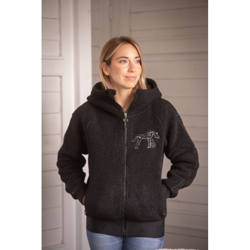 Le sweat Miwi des Collections Pénélope est confectionné dans une polaire à la bouclette épaisse et ultra-douce. Il est particulièrement confortable et agréable à porter aux écuries comme en ville.