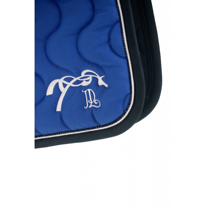 Le tapis de selle Diamant se distingue par son matelassage en vagues, son galon rehaussé d’une fine tresse et son contour délicatement orné de strass. Il a une belle ligne de dos bien dessinée pour faciliter le dégarrottage et un matelassage épais pour préserver le dos du cheval. Doublé en un tissu nid d'abeilles respirant qui absorbe la transpiration du cheval, il apporte un maximum de confort pendant le travail. Il possède également deux passants de sangle de chaque côté pour assurer sa bonne fixité sous la selle. À l'arrière, une jolie broderie Pénélope se distingue des deux cotés.