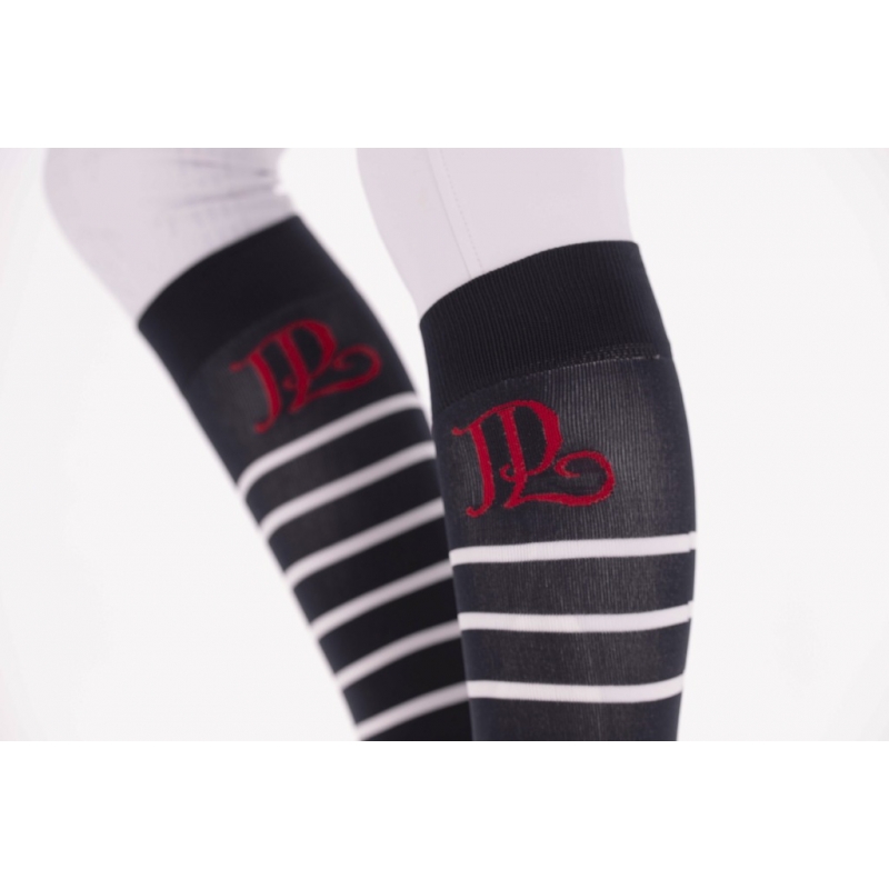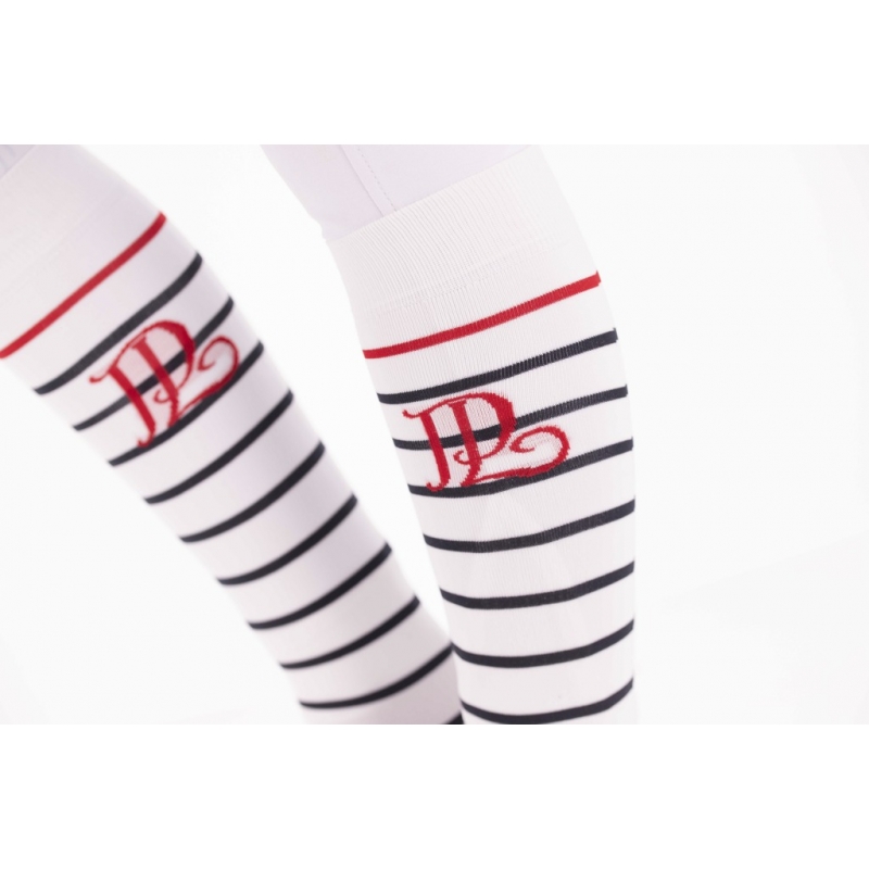 Ce lot de deux paires de chaussettes est composé d'une paire blanche rayée marine et une paire marine rayée blanc. L'ensemble porte le logo "PL" en rouge et le logo SAINT JAMES en marine sous le pied. Parfaites pour porter avec un pantalon d'équitation et idéales pour la pratique de l'équitation de loisirs ou en compétition.